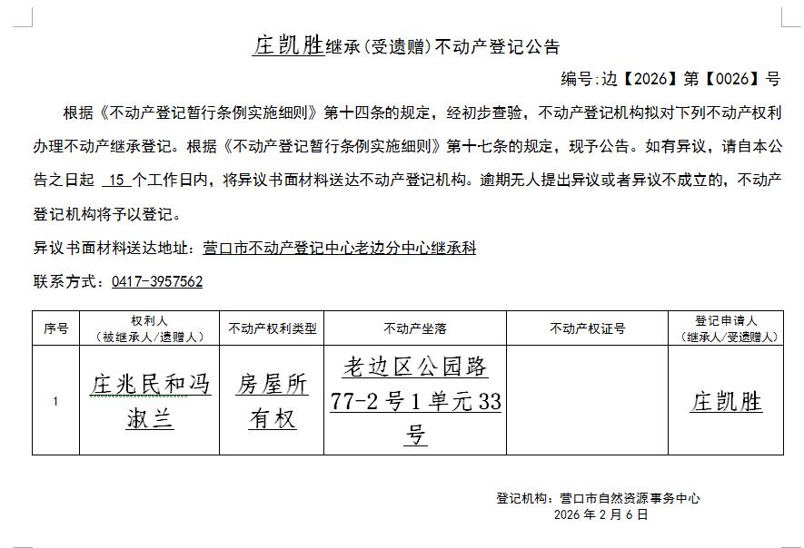莊凱勝繼承(受遺贈)不動產(chǎn)登記公告