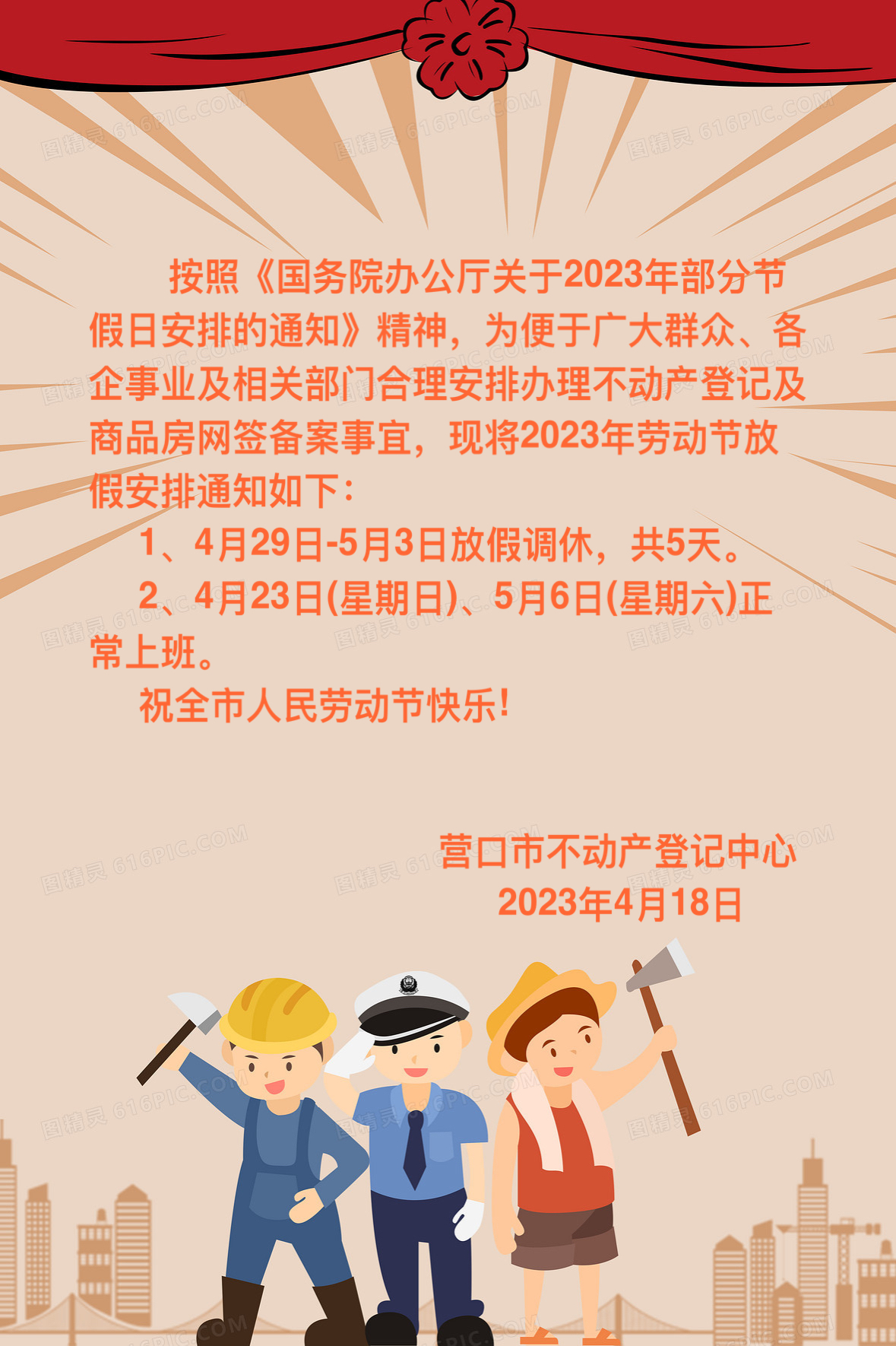 營(yíng)口市不動(dòng)產(chǎn)登記中心勞動(dòng)節(jié)放假通知