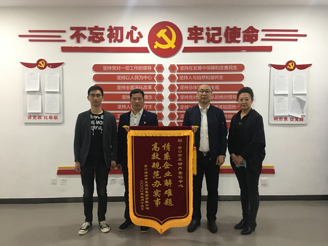 5月20日,營(yíng)口沿海開發(fā)建設(shè)集團(tuán)有限公司來到營(yíng)口市不動(dòng)產(chǎn)登記中心,送上一面印有“情系企業(yè)解難題、高校規(guī)范辦實(shí)事”字樣的錦旗,表達(dá)他們由衷的謝意。