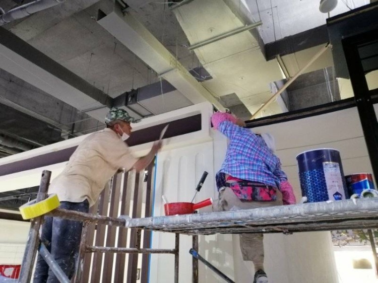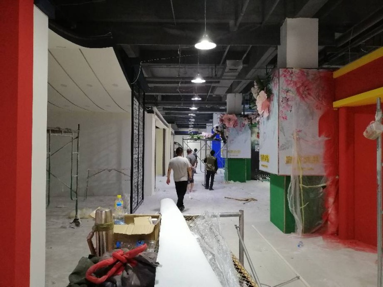 目前,裝修工人正在會場緊張有序地施工,對各個房地產(chǎn)項目展區(qū)進(jìn)行粘貼海報、安裝條幅、粉刷墻面等工作。