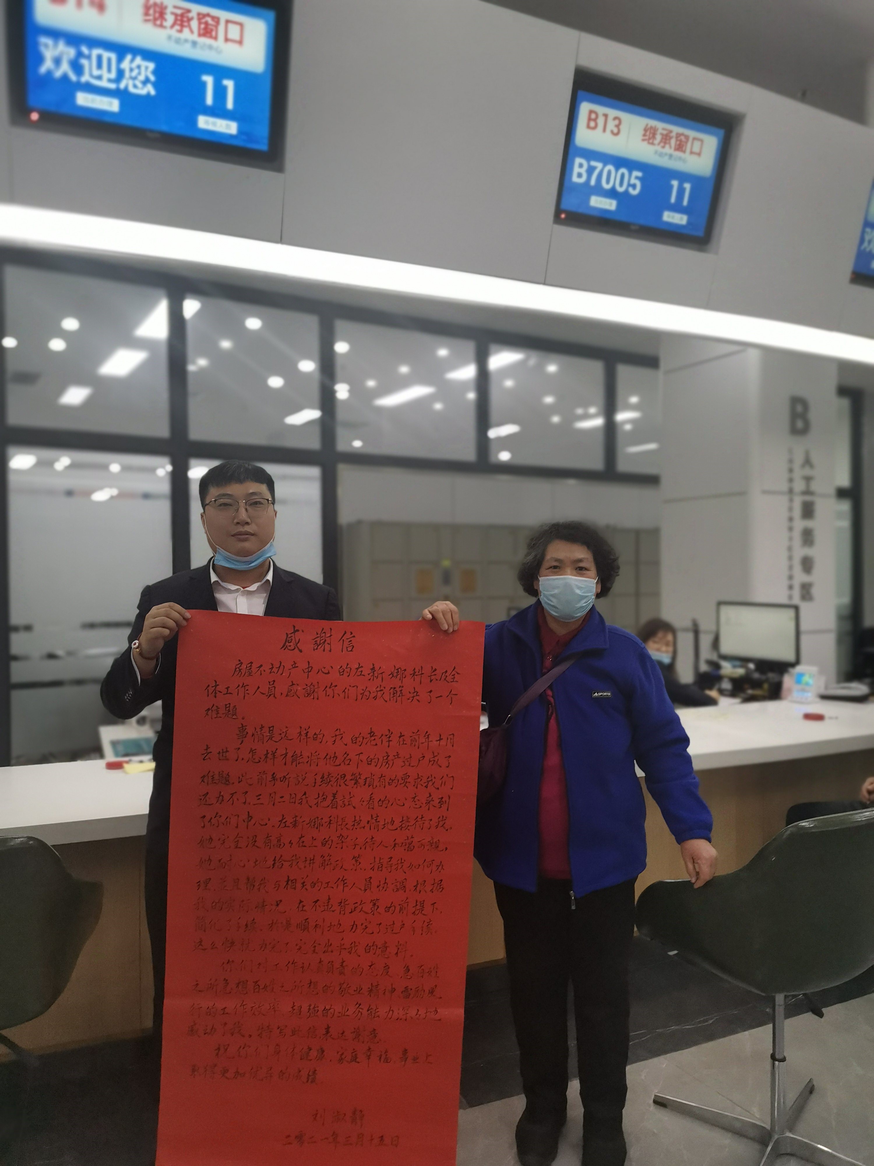 據(jù)悉,3月2日,市民劉阿姨前來辦理房屋繼承登記,因?yàn)槿以幼≡谕獾?,開具死亡證明等相關(guān)手續(xù)較為困難,兒子又在部隊(duì)服役,回來簽字時(shí)間有限,對(duì)能否辦成繼承登記心里一直打鼓,加之她的老伴剛?cè)ナ啦痪?,心情十分低落。見此狀左新娜同志熱情地接待了她,耐心地講解政策,指導(dǎo)辦理流程,在依法合規(guī)的前提下,充分簡(jiǎn)化流程。同時(shí),切實(shí)考慮到劉阿姨焦慮的心情,繼承登記科的辦件人員利用周六周日時(shí)間,加班幫助劉阿姨快速高效地辦理了相關(guān)手續(xù)。感謝信很好地詮釋了劉阿姨的感激之情,她這樣寫道:“你們對(duì)工作認(rèn)真負(fù)責(zé)的態(tài)度,急百姓之所急、想百姓之所想的敬業(yè)精神,雷厲風(fēng)行的工作效率,超強(qiáng)的業(yè)務(wù)能力深深地感動(dòng)了我,特寫此信表達(dá)謝意?!?br />